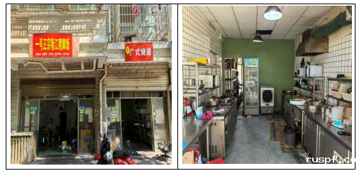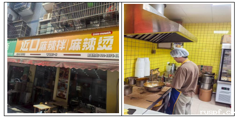 检查发现问题:1、“三防”设施不全,有苍蝇,无灭蝇灯;2、操作间内设有厕所,环境卫生脏乱差;3、从业人员未佩戴口罩,部分工作人员无健康证,未着工作服,穿拖鞋;4、冰箱内生熟、荤素、成品半成品原料混放,未及时清理冰箱,无温度显示;5、成品外卖无食安封签;6、垃圾桶未及时清理;7、食品原材料随地摆放。