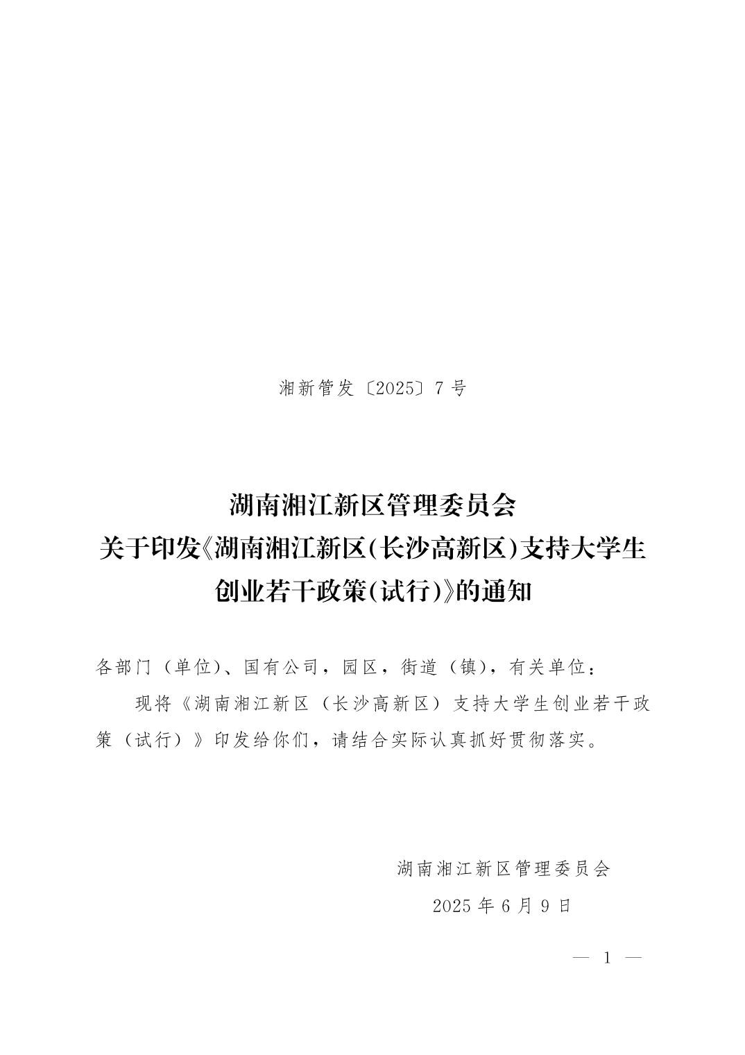 华体会体育app首页管理委员会关于印发《华体会体育app首页(长沙高新区)支持大学生创业若干政策(试行)》的通知