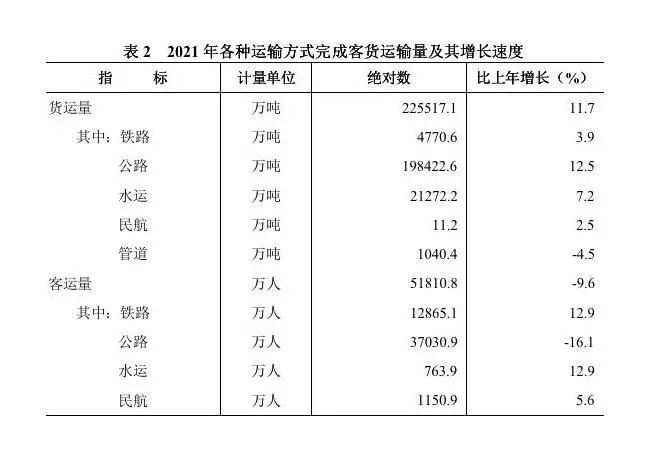 全年客货运输换算周转量3608.3亿吨公里,比上年增长10.6%。货物周转量2915.9亿吨公里,增长11.3%。其中,铁路周转量986.9亿吨公里,增长15.2%;公路周转量1461.2亿吨公里,增长8.2%。旅客周转量1013.3亿人公里,增长3.4%。其中,铁路周转量660.6亿人公里,增长8.7%;公路周转量195.4亿人公里,下降13.1%;民航周转量155.7亿人公里,增长6.9%。