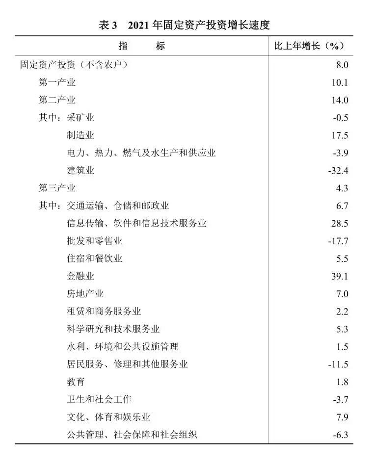 全年固定资产投资(不含农户)比上年增长8.0%。其中,民间投资增长9.6%。分经济类型看,国有投资下降5.1%,非国有投资增长12.9%。分投资方向看,民生工程投资下降3.8%,生态环境投资增长3.9%,基础设施投资增长3.6%,高技术产业投资[10]增长15.6%,工业技改投资增长17.5%。分区域看,长株潭地区投资增长7.3%,湘南地区投资增长7.5%,大湘西地区投资增长6.2%,洞庭湖地区投资增长9.5%。